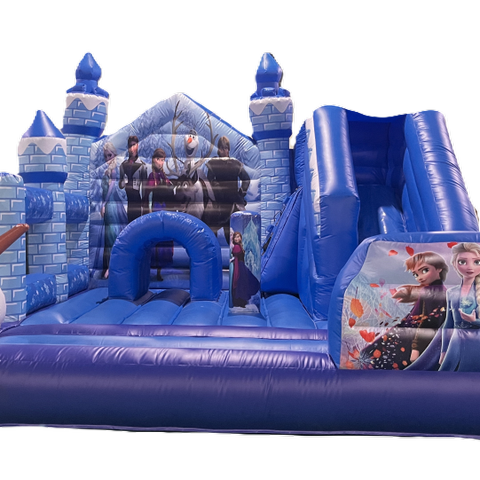 Hinta sisältää: pomppulinna, puhallin, alustapressu ja kiinnitystarvikkeet.