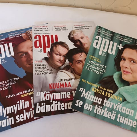 Apu lehden vuosikerta 2012, 2013 ja 2014. Uutta vastaava kunto. Hinta 10 euroa per vuosikerta.