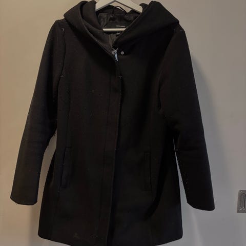Tumman sininen Inwearin villakangastakki tarpeettomana