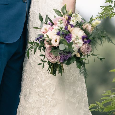 "Elegantti ja upea fit & flare - hääpuku on valmistettu useista kerroksista tylliä ja kangasta. Siinä on kauniita kukkakirjailtuja pitsikoristeita, joita korostavat helmet ja timanttikoristeet, jotka luovat ylellistä hohtoa pukuun. Pitsikuvio peittää sydänpääntiellä olevan yläosan ja laskeutuu kevyesti hameen yli, kun taas olkaimet muodostavat V-muodon sekä edessä että takana, luoden näyttävän ja ylellisen ilmeen."