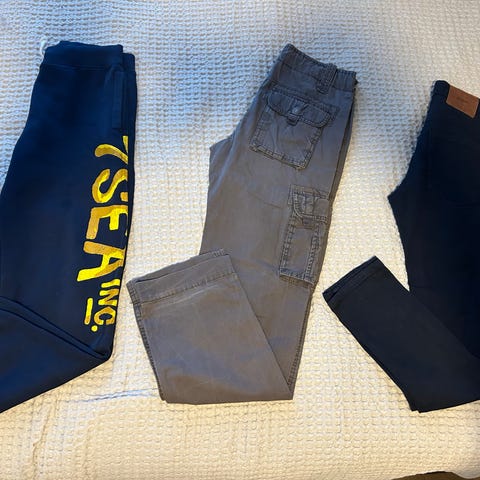 Käytettyjä mutta pääosin hyväkuntoisia housuja mieluiten pakettina. Koko 152.