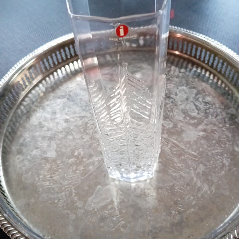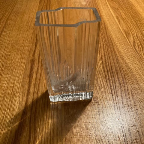 Täysin ehjä maljakko jossa paikoillaan Iittalan tarra ja lisäksi veteraani merkki.