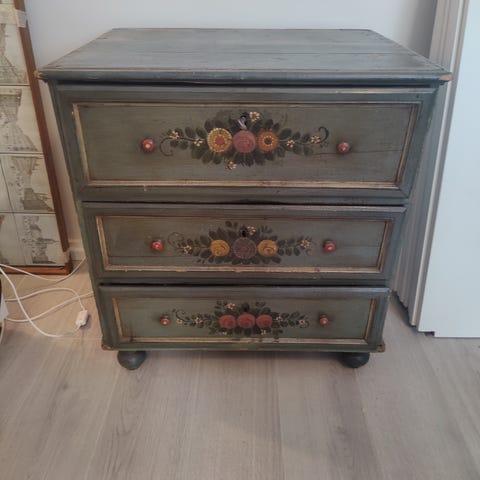 Kunnostettu vanha ihana vetolaatikosto 1800-luvulta. Väri kaunis vaaleanharmaa