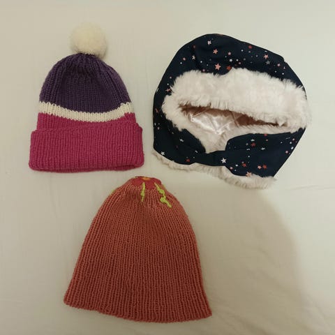 Myydään uutena ostetut ja vain kerran / kaksi päässä käyneet lakit. Koko 48/50 ja 92/104. Sopivat 1,5-4 vuotiaalle. Vaaleanpunainen pipo jossa perhosia, vaaleanpunavalkoinen pallopipo sekä harmaa lintupipo on myyty. Hinta 2 /kpl. Oulu /iinatti