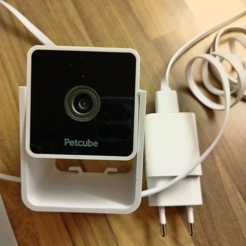 Petcube lemmikki kamera jolla voi syöttää koiralle herkkuja. Kamerassa on kaksisuuntainen ääni eli kuulet koirasi mutta voit myös puhua koirallesi kameran kautta. Toimii puhelin sovelluksella.