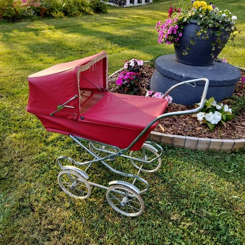 Kaikki liikkuvat osat toimivat, pyörät irroitettavissa, jarru toimii ja koppa irtoaa nostamalla.