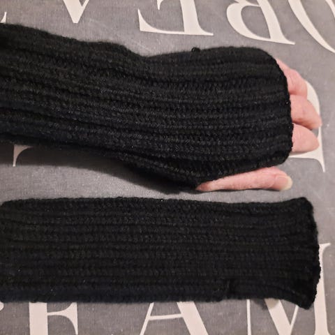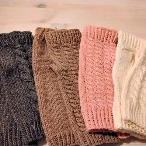 Luonnonvalkoiset kämmekkät, vaaleansinisillä raidoilla.
