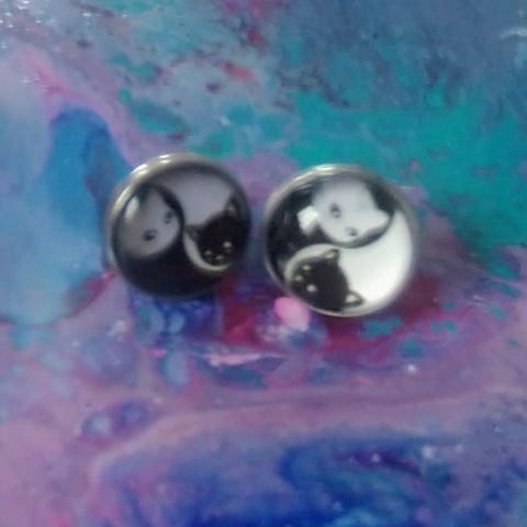Korvakorut Yin Yang. Läpimitta 1,3 cm. Uudet koukut.