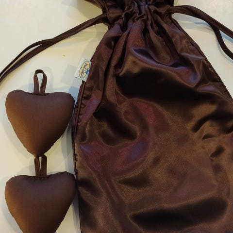 Kuvan nahkainen kenkäpussi. Korkeus 31 cm. Pohja 15 cm× 14 cm. Suussa kiristysnyöri.