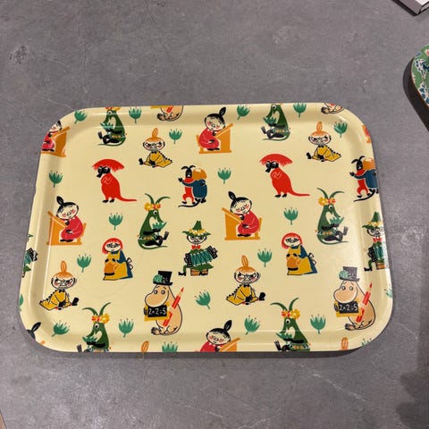 Tarjotin "seikkailu", halkaisija 35 cm. Tuotettu vuosina 2009-2013. Ehjä ja siisti. Materiaali:laminoitu koivu.
