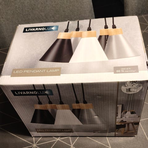 Kuvanmukainen setti valaisin, liiketunnistin ja johto. Käyttämätön setti.