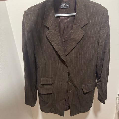 MSGM:n vaaleanpunainen puku, joka vastaa pienehköä S-kokoa tai isohkoa XS-kokoa. Sekä housuja että takkia aikanaan pienennetty, kun puku on ostettu 2017. Vuosien saatossa syntynyt lieviä käytön jälkiä, joista silmiin pistävin pieni reikä (<5 mm) oikean hihan sisäsyrjällä.