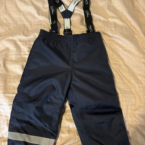 Hyväkuntoiset ja siistit toppahousut henkseleillä. Koko 86/92 cm. Nouto tai postitus.