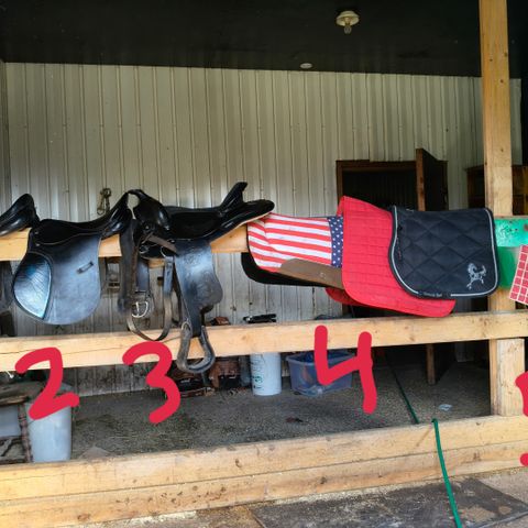 Hyväkuntoinen satula. Löytyy möys satula huopia ja remmejä.