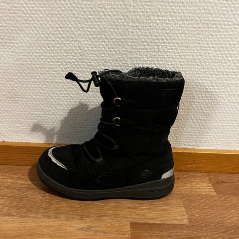 Yhden lapsen käyttämät yhtenä talvena. Uutena ostettu. Kunto oikein siisti ja tarrat pitävät edelleen hyvin. Sisämitta raksamitalla 18,5 cm.