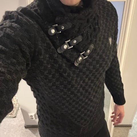 Aries paksu musta neule, jonka toisessa hihassa valkoisella teksti ARISE. Kokolappu puuttuu, mutta neule sopii koolle M–XL riippuen toivotusta istuvuudesta. Hieman nyppyyntymistä hihoissa ja neuleen etuosassa (kts. kuvat). Ovh 300e luokkaa.