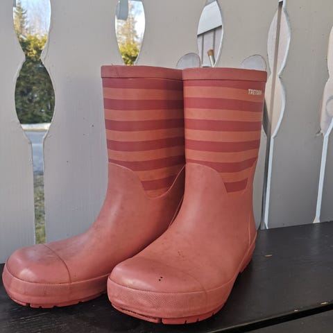 Myydään käytetyt, mutta ehjät Tretornin kumisaappaat kokoa 35. Tolnen pohjallinen puuttuu.