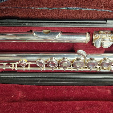 Myydään hyvässä kunnossa oleva Yamaha 471 avoläppäinen poikkihuilu. Huilussa on hopeinen runko ja suukappale. Hopeoitu ulosvedetty avoläppäinen koneisto. E-mekanismi. Huiluun kuuluu kotelo ja suojapussi.