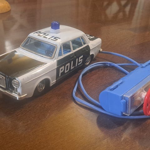 Vanha Bandai Japan sähkötoiminen rekka. Yksi pyörä puuttuu. Kunnostettavaksi. Vintage lelu.