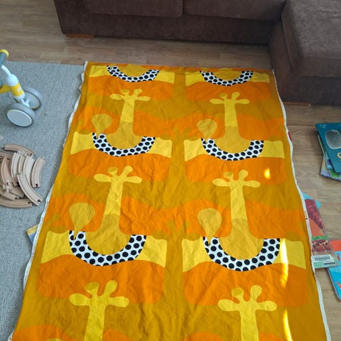 Joyce, Made in Finland by Tampella, paksua puuvillaa, retroa, arvio 1970- luvulta, pituus 320 cm.