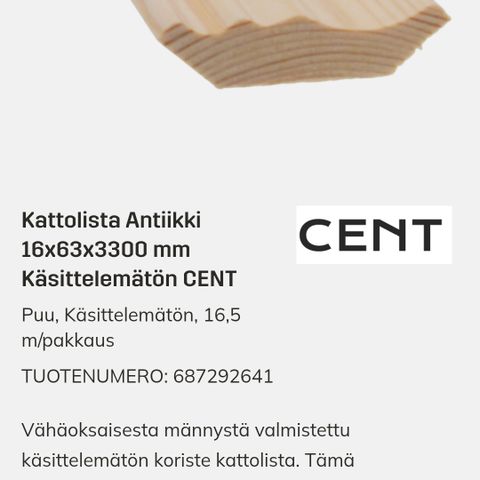 --Peitelista 12x70x3200mm. Puuvalmis mänty Talouslaatu. 4.50€ kpl.