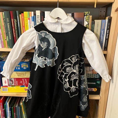 Myynnissä valkoinen norsu paita / mekko / paituli ja siniset / valkoiset shorsit, koko S noin 98/104. Mekossa takana napit ja koristeita edessä. Hintapyyntö noudettaessa 10,-