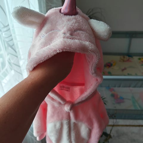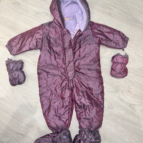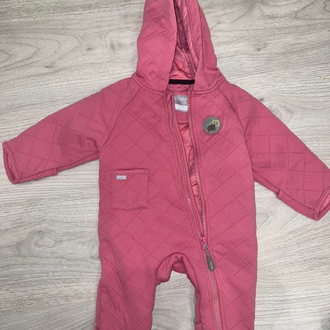 Ihanan pehmeä vaaleanpunainen vanuhaalari. Meillä ollut käytössä tytön ensimmäisenä talvena aina vaunuissa nukkuessa. Helppo pukea molemminpuolisten vetoketjujen ansiosta.