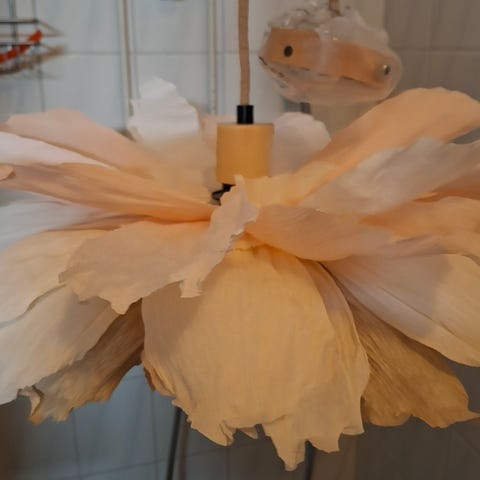 Kaunis, hyvin hailakan vaaleanpunainen kattovalaisin. Ehjä, siisti.