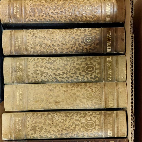 "Pieni Tietosanakirja" 1920-luvulta, 4-osainen, koko sarja A-Ö. Nahkaselkäset kirjat.