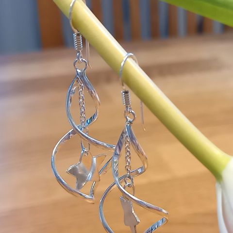 Hopeiset kevyet risti korvakorut, leimat GST ja 830. Riipuksen korkeus 1,3 cm. Siistikuntoiset.