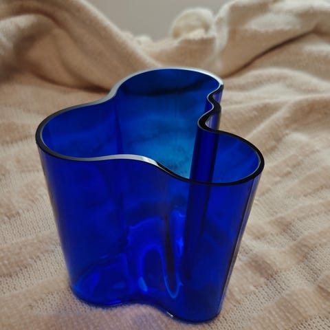 Iittala aalto vaasi pienin koko eli kuvassa vasemmalla. Korkeus 9,5cm, valkoinen