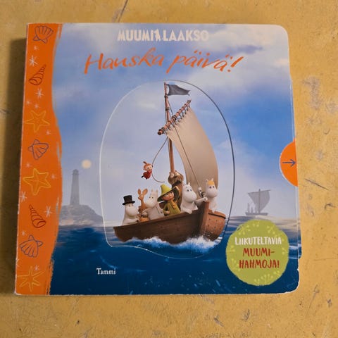 Kirja on suunniteltu pienelle lapselle. Kirjassa on liikuteltavia Muumihahmoja jotka saa esiin esim sivuilla olevista vivuista. Kirja on valitettavasti kulunut selkämyksestään ja sitä on pitänyt vahvistaa joskus kirkkaalla teipillä. Kaikki kuitenkin toimii ja kirja pysyy "kasassa"