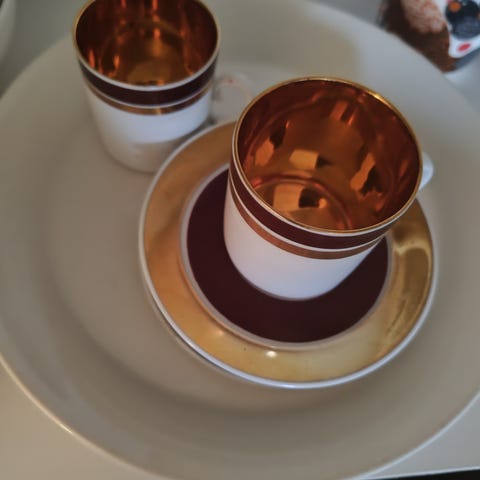 Vintage upea kreikkalainen 24 karaatin kultaus riikinkukko mokkakuppi ja tassi yhteishintaan 20 e