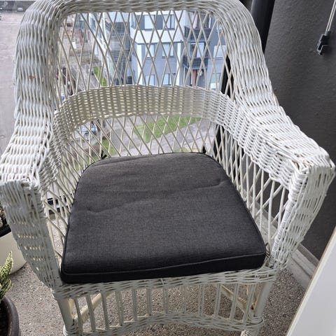 Myydään kuvan kaunis valkoiseksi maalattu korituoli. Nouto Helsingin Pitäjänmäestä.
