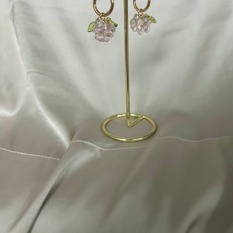 1. Lasihelmikorvikset, lasihelmet kiinnitetty ja koukku menee pallon läpi. Pallo 2cm, koko pituus 4 cm. Mieheni tekee näitä. Hyvin tarkkaa työtä. 10 €