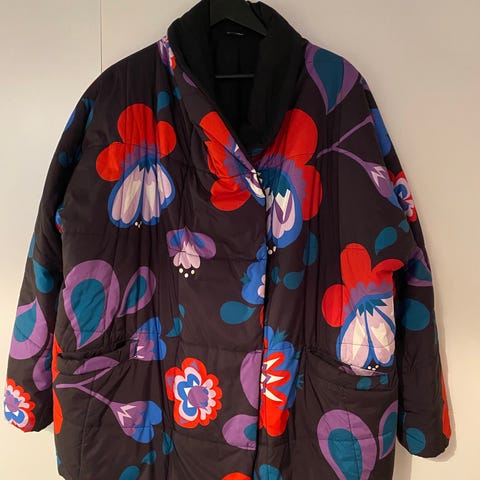 Kokonumeroa ei takissa ole mutta se on noin L-kokoinen. Pituus puolireiteen.