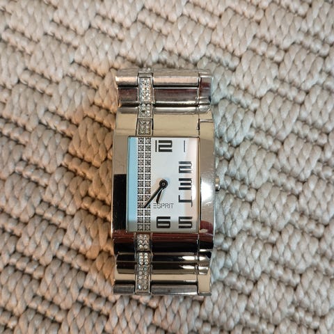 Esprit rannekello, ranekeen ympärys 23,5 cm + 3 cm jatkokappale. Toimiva ja kunnossa.