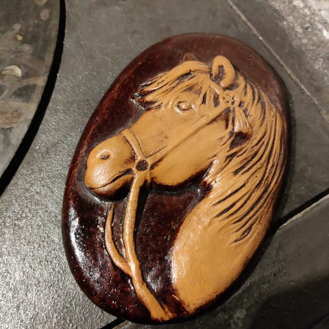 Myydään hevosenkenkä koriste-esine ikonilla , koko 12:10 cm