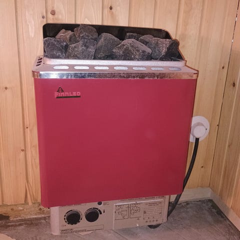 Saunan kiukaan peltikuori. Vähän käytetty, mutta ollut pitkään ulkona, joten hieman ruosteinen. Osa hormia puuttuu, on tallessa, mutta pitäisi hitsata paikoilleen.