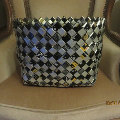 Myydään tukeva hyväkuntoinen kahvipussikori, korkeus 27cm, mitat 36cm x 23cm. Hauskan näköinen on.