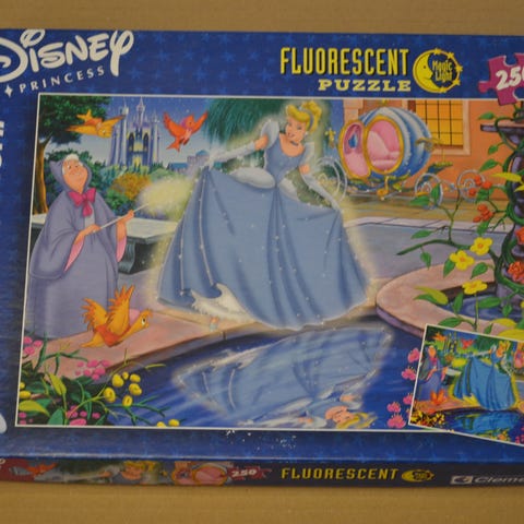 Disney Prinsessat palapeli. Sisältää kaksi 20 palan palapeliä. Toisesta palapelistä puuttuu yhdestä palasta pala. Katso kuva. Näkyy mustana kohtana palapelin oikeassa reunassa. Toinen palapeli on erittäin siisti ja uudenveroinen. Laatikko on siisti ja hyvässä kunnossa.