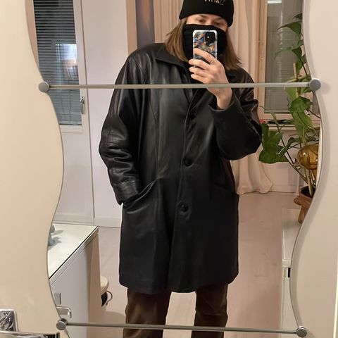Käyttämätön lehmännahka takki jossa nahkainen irroitettava huppu. Koko M/40 rinnanympärys 107cm, vyötärö 99cm, hihat 67 cm ja hartiat 47cm