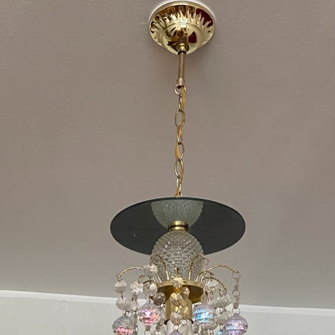 Kristallivalaisin. Ehjä ja kaikki kristallit. Mielellään nouto.