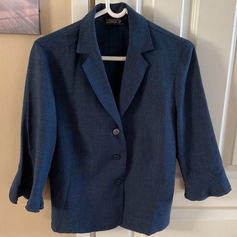 Uudenveroinen musta bleiseri/jakku jossa hennot pystyraidat. Koko 36, vuorellinen. Edessä kaksi taskua, varanappi mukana. Pesty. Kai-kai 2x 46 cm,pituus takaa kauluksen alta 56 cm