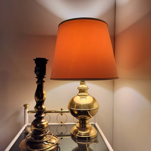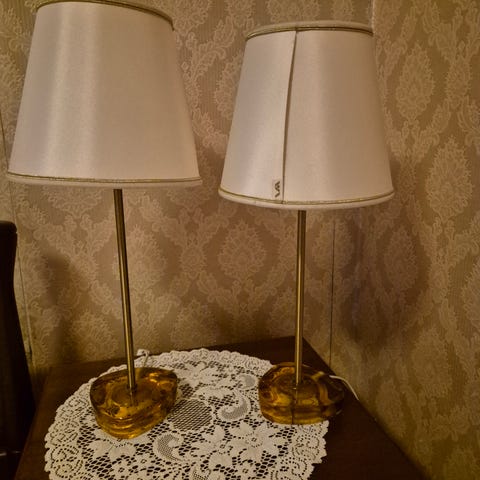 Upea patinoitunut valaisinpari. Johdot uusittu. Yhteishinta 120€, myydään parina. Nouto käteinen tai MobilePay Espoonlahti. Korkeus 46 cm ilman lamppua. Jalkaisin halkaisija 18 cm.
