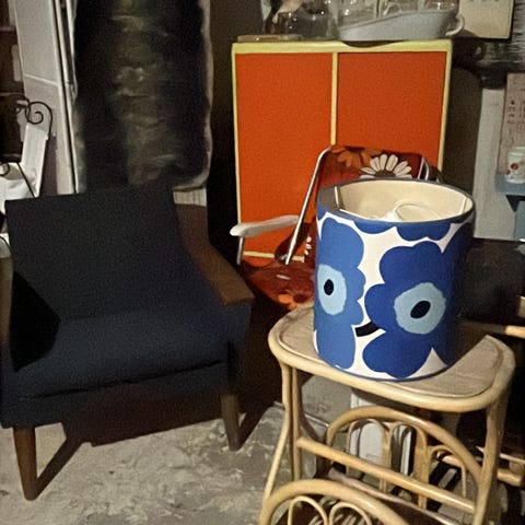 Kysy jos kiinnostaa. MYYTY; klaffilipasto, ruskee hylly, baarijakkarat, oranssit pienet jakkarat, köökin kalusto, kiikkustuoli, puun värinen arkku, seinä gobeliini, nuken rattaat, musta töllötuoli, kasti, retro punavalk peilihyllykkö, vaatekoit opetustaulu, rottinki tarjoiluvaunu. Jämsänkoski
