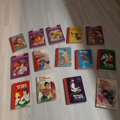 Anni Polvan Tiina-kirjasarjan loput 15 kirjaa, vanhin kirja 1970-luvulta ja uusin 2000-luvulta, kirjoissa käytön jälkiä mutta ovat ehjiä, sarjan ensimmäiset 14 kirjaa myynnissä toisessa ilmoituksessa, voi myös tarjota hintaa