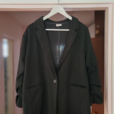 Uusi ja käyttämätön Bershkan musta taskullinen bleiseri koossa L. Tyköistuva malli, edessä yksi nappi.