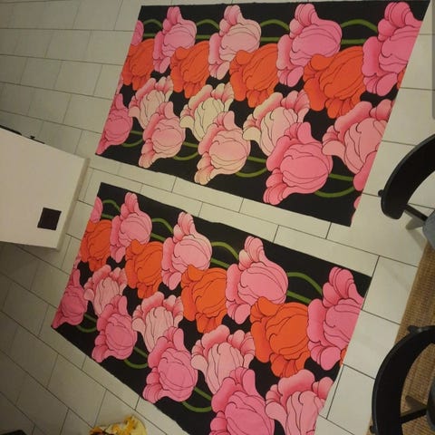 Retro, vintage, oviverho, sivuverho, pitkä verho