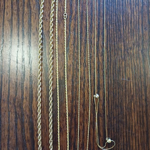 Erittäin kaunis monikerroksinen kaulaketju. Pituus n.60cm. 10€/ tarjous. Rannekoru Monet. Halkaisija 75mm ja leveys 11mm. 10€/ tarjous. Yksinkertainen ketju. Pituus 100cm. 10€/ tarjous. Kaikki yhteensä 25€. Voin lähettää kuluja vastaan.